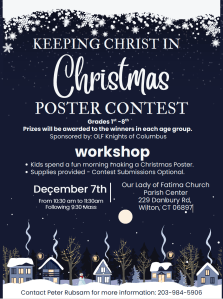 | Dec 7, 2025 | Keep Christ In Christmas Kids Poster Contest Kickoff | Our Lady of Fatima, Church | Peter Rubsam |