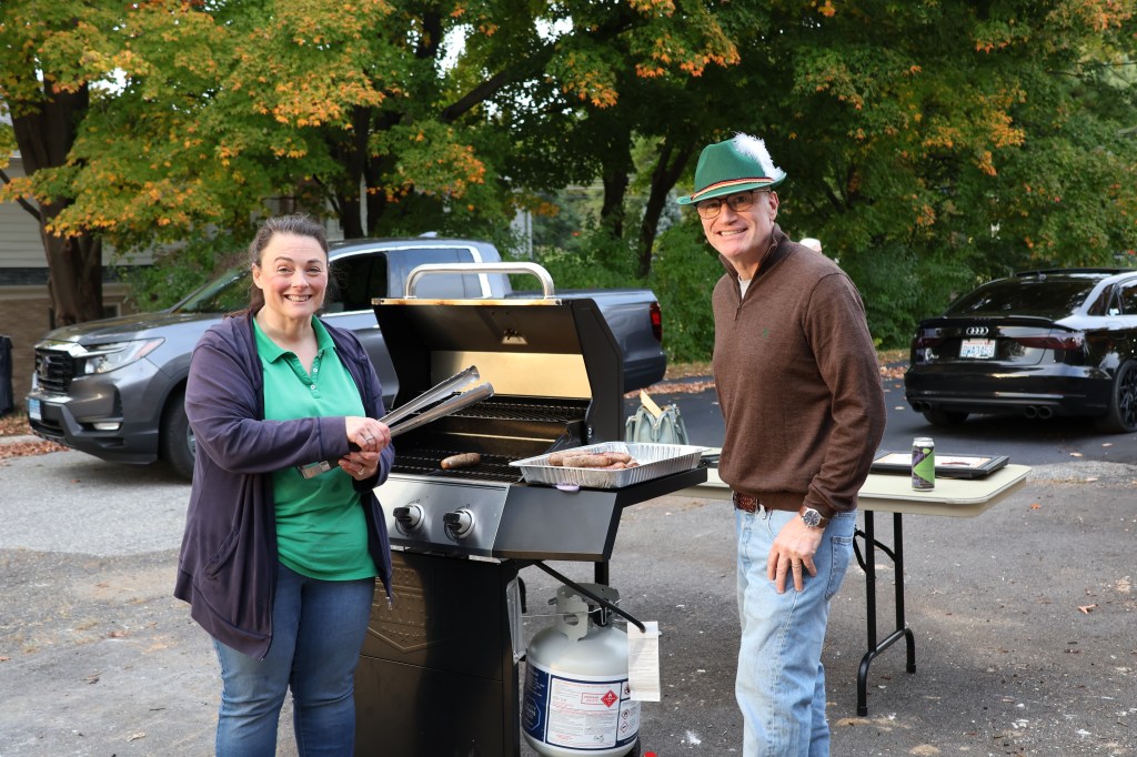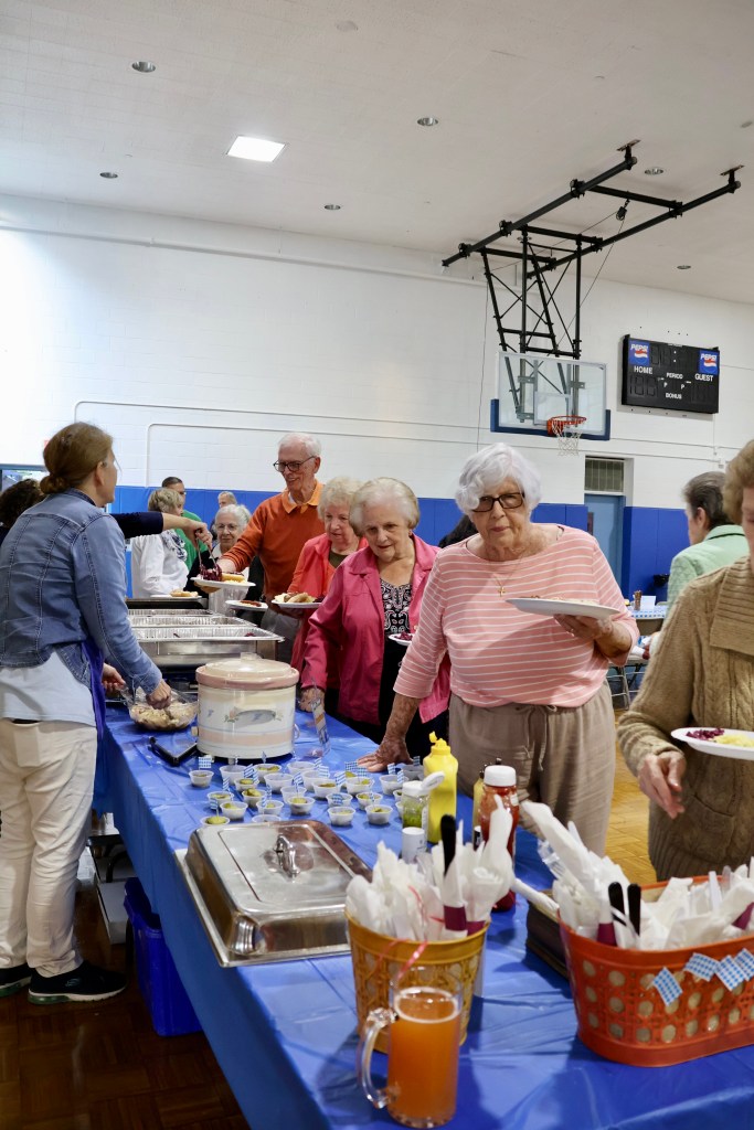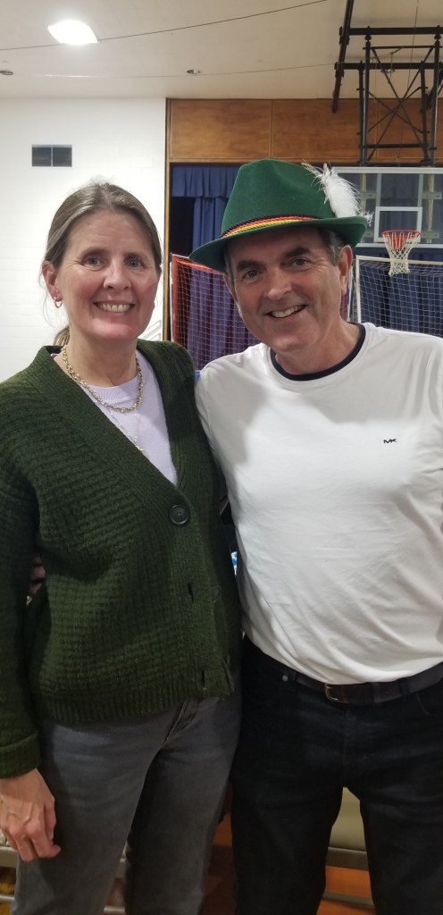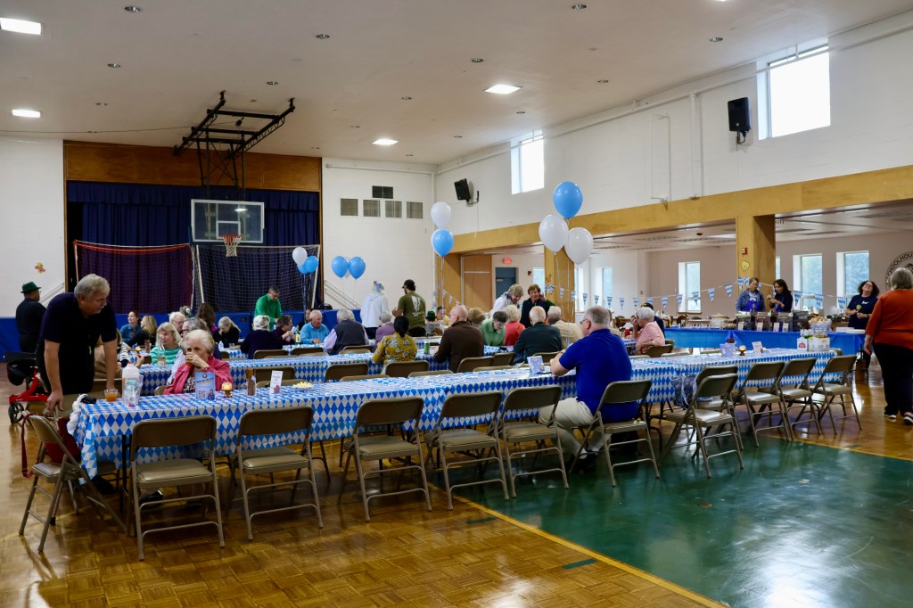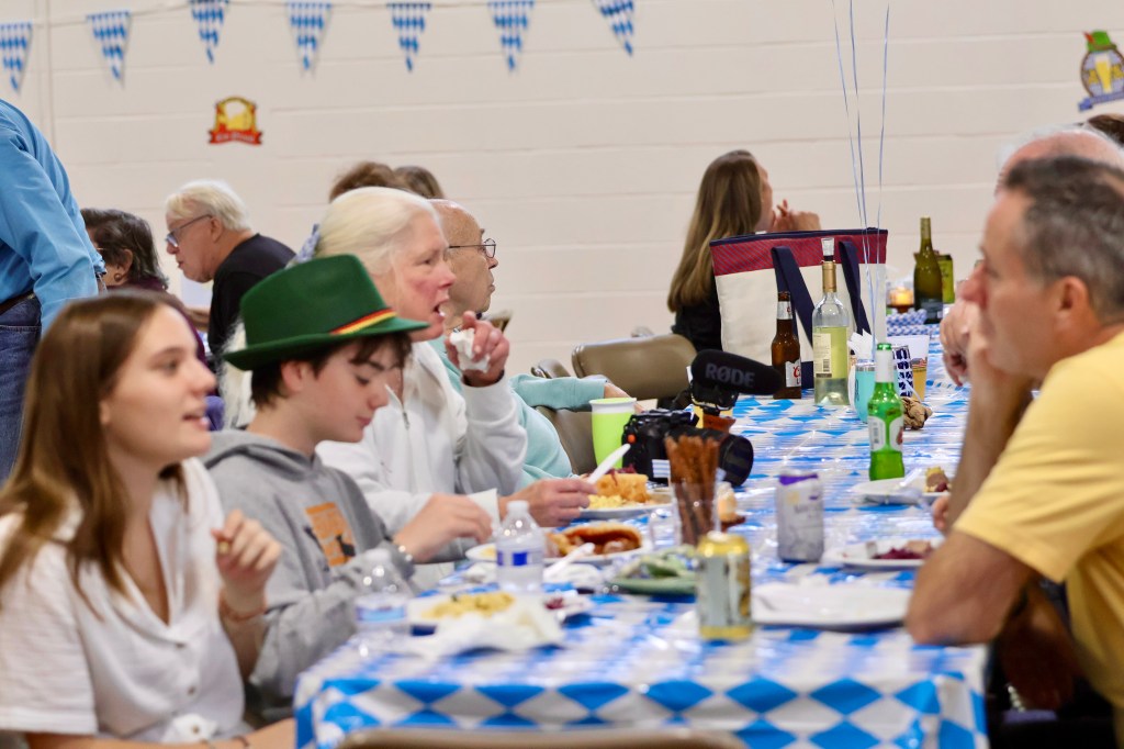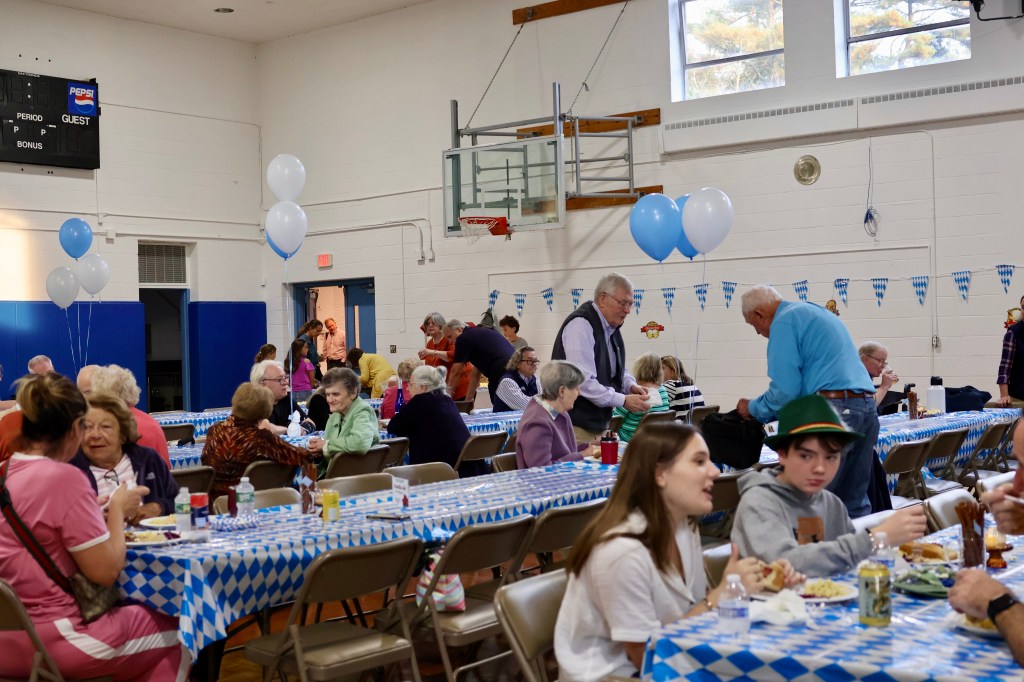 The event was held in the School Gym which was a last minute decision and a great one given that the crowd was over 100 people. There was a mix of adults and children, both of which craved the popcorn that was available. The quality of the Bratwurst was out of this world with head chef Suzette Grimmer refusing to give away her secrets, although we did see a lot of beer involved in the recipe! In addition, there were plenty of sides available including the German Potato Salad Spaetzel, and the food was distributed masterfully by Patty Terranova and her well abled team of Columbiettes. For those who had room afterwards, there were many pies available for dessert.