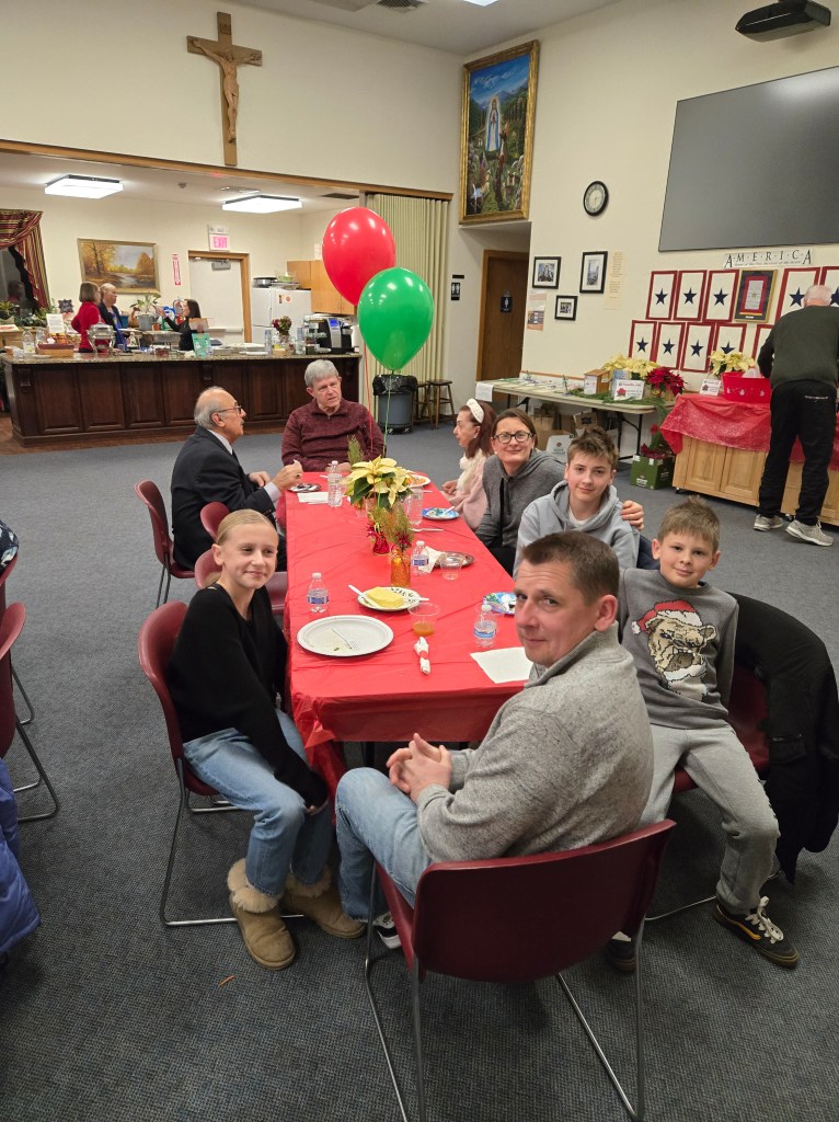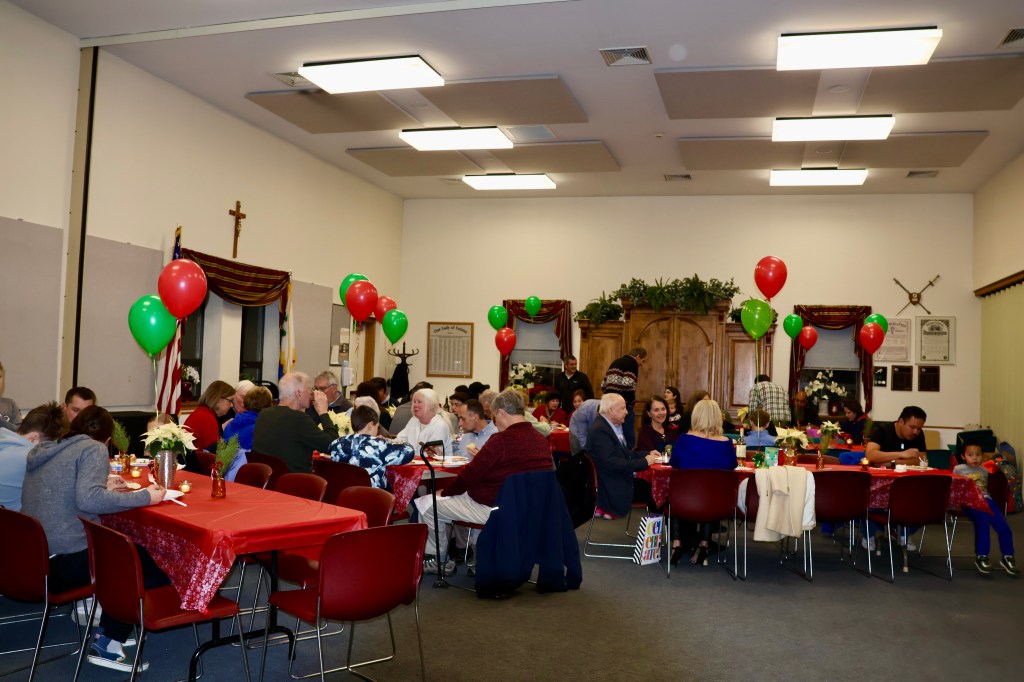 The Columbiettes hosted a fantastic Pasta Dinner afterwards for everyone, with Patty and Suzette leading the charge, and Lyz photographing the event like it was Oscar night!. Everyone had a great time – it felt like Christmas Day came early! Thanks to all the Columbiettes who put on a fantastic feast and to the Knights who helped setup